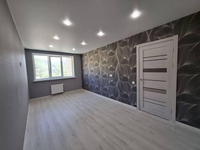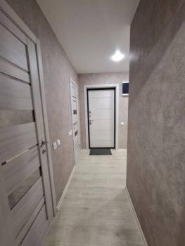 Особенности: Гардеробная, Железная дверь, Ламинат, Межкомнатные двери, Натяжной потолок, Пластиковые окна, Софиты, Стены выровнены, Тёплый пол