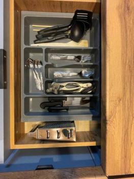 - Встроенные: духовой шкаф, индукционная плита, вытяжка, посудомоечная машина, холодильник