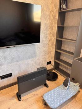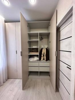 В квартире имеется собственная гардеробная система, а также: Железная дверь, Межкомнатные двери, Натяжной потолок, Паркет, Тёплый пол, Пластиковые окна, Кондиционер и все необходимое для комфортного проживания, в т.ч. телевизор с плоским экраном и кабельными каналами, интернет (Владлинк). Апартаменты располагают отдельной спальней, ванной комнатой, стиральной машиной, бойлером на 80 литров, а также полностью оборудованной кухней с чайником, микроволновой печью, холодильником, варочный панелью, духовым шкафом, посудомоечной машиной, кухонной утварью. Установлена система фильтрации питьевой воды.