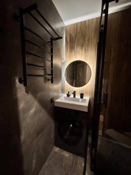 Техника: Кондиционер, водонагреватель, телевизор, чайник, вытяжка, встроенная микроволновая печь, встроенный духовой шкаф, стеклокерамическая плита, встроенная посудомоечная машина, стирально-сушильная машина, встроенный холодильник
