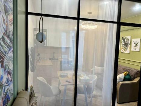 Особенности: В квартире выполнен дизайнерский ремонт с отличным зонированием. Квартира полностью укомплектована для комфортного проживания одного, двух человек. Железная дверь с зеркалом во весь рост с внутренней стороны, Натяжной потолок, Ламинат, Панорамное окно, Софиты, Стены выровнены, Тёплый пол по всей квартире.