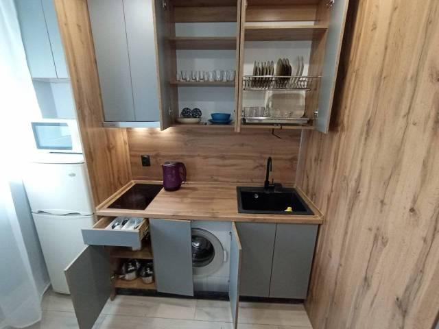 Техника: Микроволновая печь, Вытяжка, Плита, Стиральная машина, Холодильник, Чайник, Титан., Кондиционер.