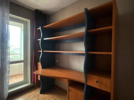 1 комната: большой письменный стол с вместительными зонами для хранения, кровать с матрасом, шкаф, с застеклённой лоджией (довольно большая по размеру, с видом на город, есть зоны для хранения);