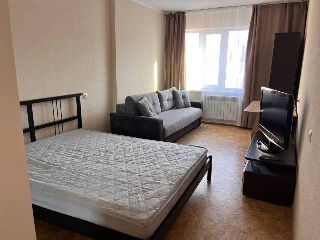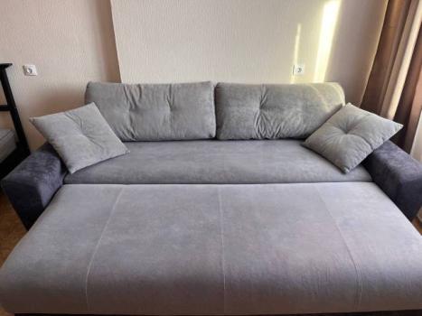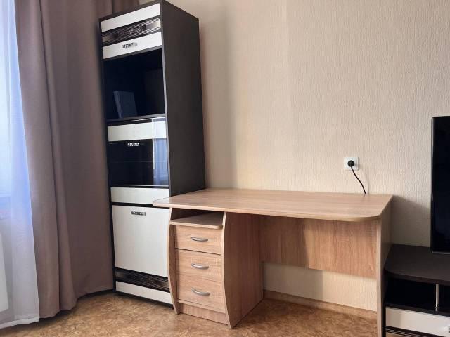 Мебель: Двуспальная кровать 1,6х2,0 м., Удобный раскладной диван, Тумба под ТВ, Шкаф-пенал, Письменный стол, 2 шкафа-купе, Кухонный гарнитур, Обеденный стол и 4 стула.