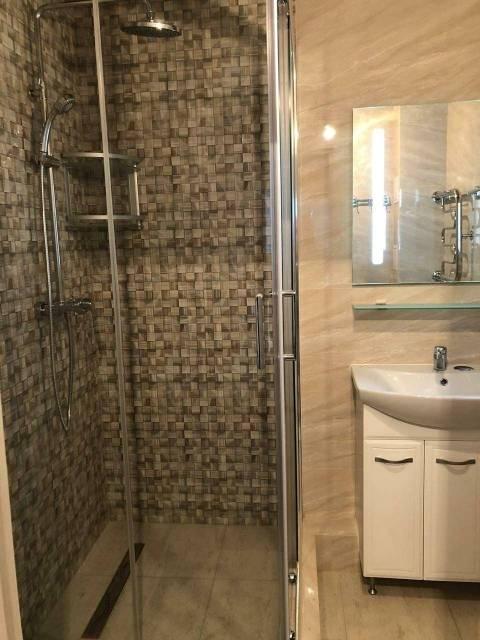 В квартире печка с духовкой, стиральная машина, стол кухонный, стулья, новый кухонный гарнитур, вытяжка, водонагреватель, мебель для ванной и туалета, кондиционер, гладильная доска, 2 телевизора, диван 140*200, большой холодильник.