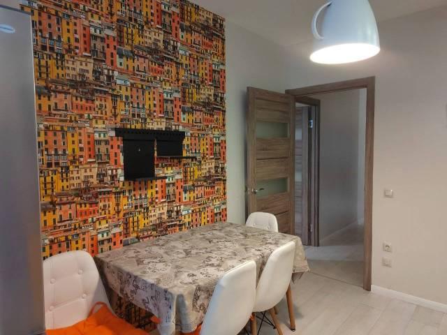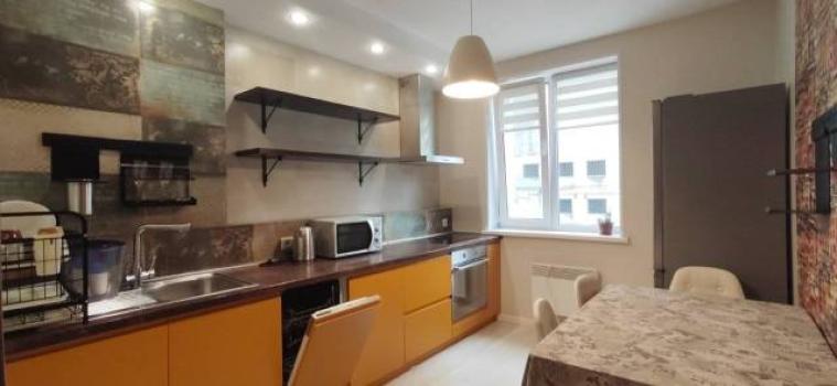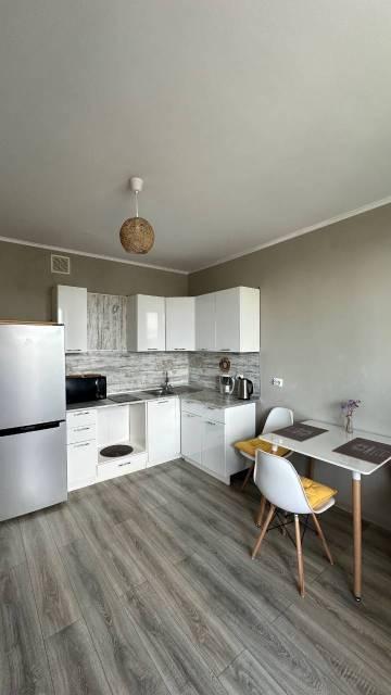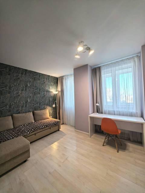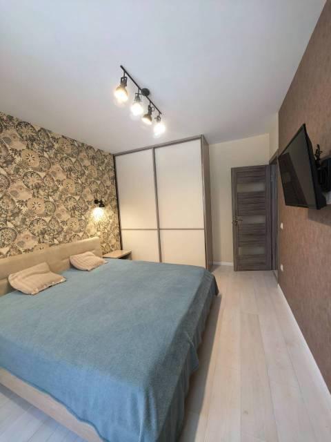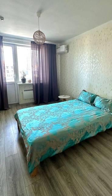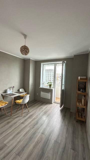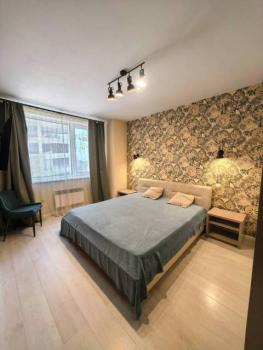 Этаж средний в 26 этажном доме. В квартире есть все необходимое для проживания для 1-2 человек. Кровать с эргономический матрасом. Гардеробная. В доме есть консьерж.