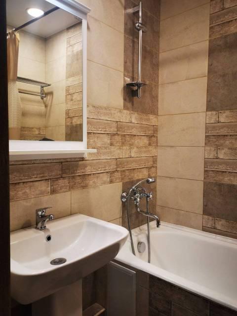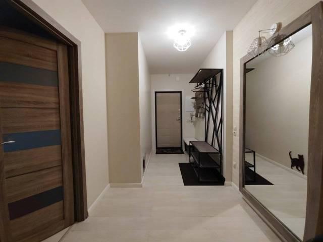 Особенности: Железная дверь, ламинат, теплый пол, межкомнатные двери, пластиковые окна, софиты, стены выровнены.