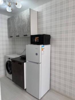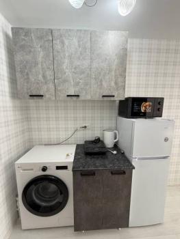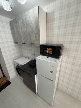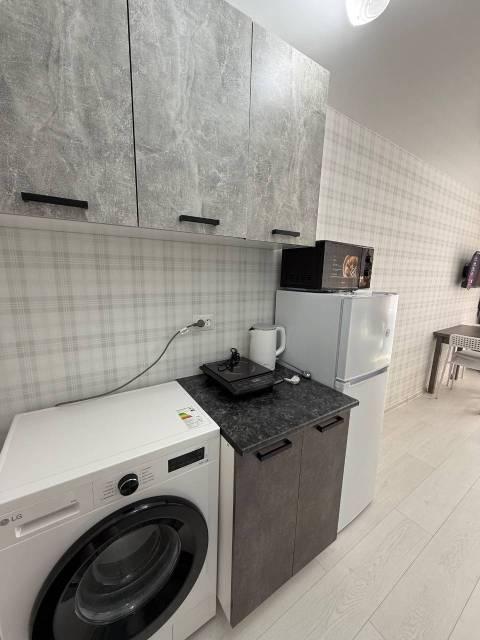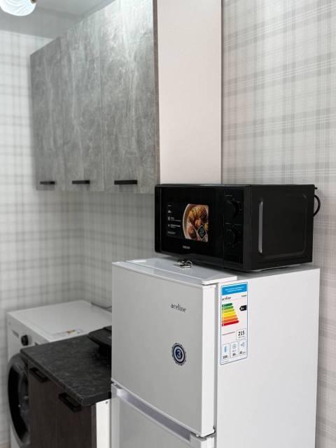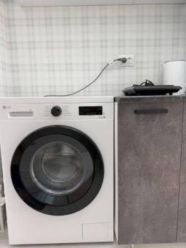 Техника: Микроволновая печь, На кухне электроплита, стиральная машина. Холодильник в комнате., на время плановых отключений гор. воды есть титан, всегда горячая вода.