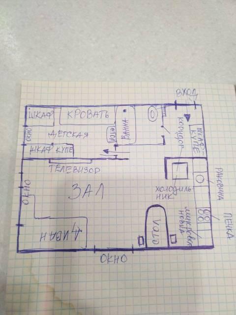 Мебель: Диван, Обеденный стол, Письменный стол, Шкаф, большая полка для обуви. Имеется сушка для белья. Гладильная доска, Утюг