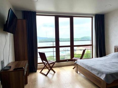 Особенности: Уютная квартира студия в новом таунхаусе на берегу моря с витражными окнами и террасой. Недалеко от центра города (10 минут на машине).