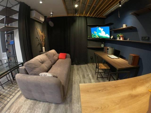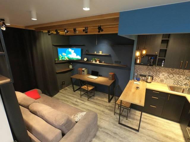 Современная, не шаблонная, квартира–студия в свежем доме, без бабушкиной мебели и техники с помойки, ищет аккуратного арендатора, который оценит и которому подойдут её особенности.