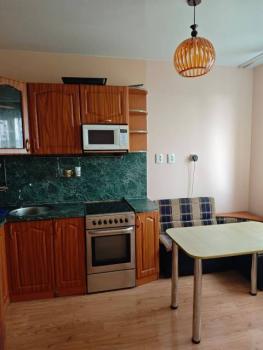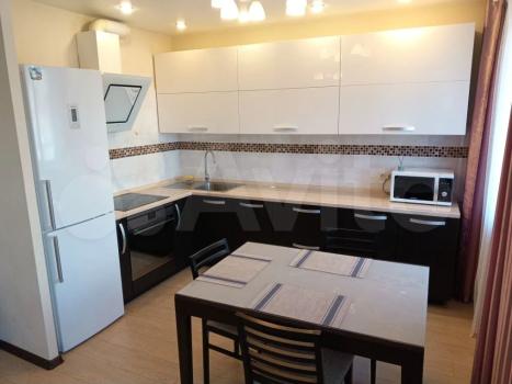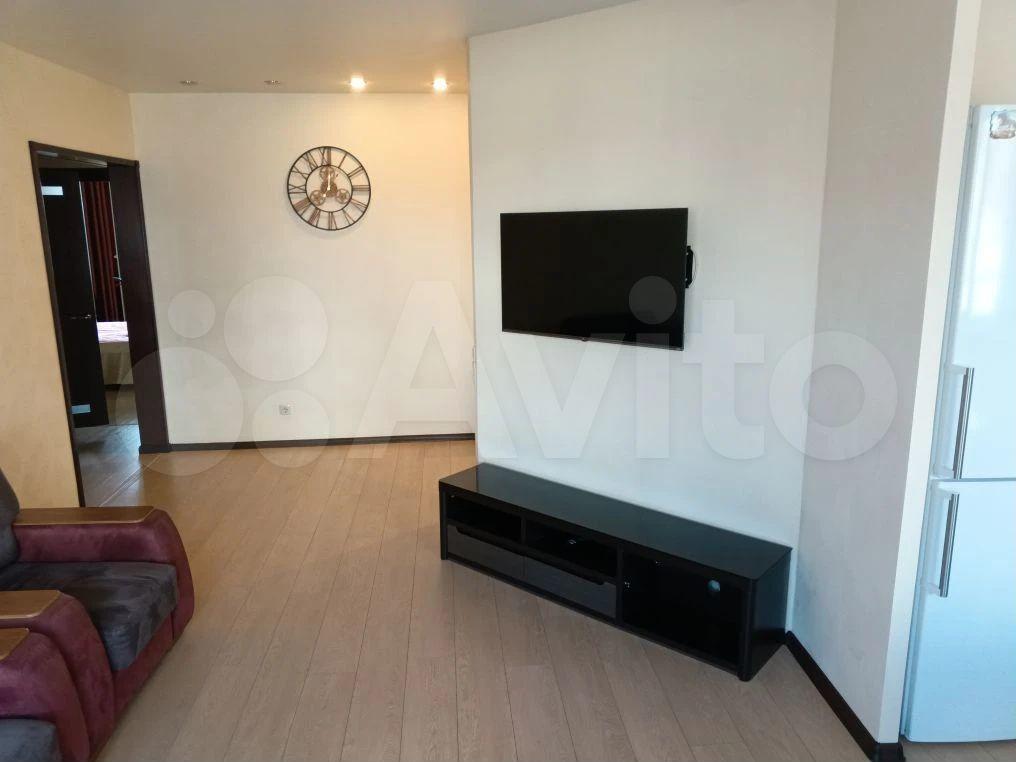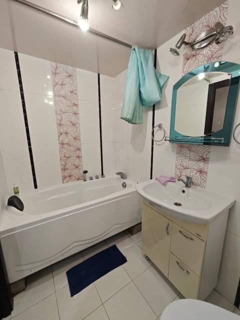 В квартире выполнен евро ремонт. Комнаты смежные, санузел раздельный. На кухне площадью 9 м² установлена современная бытовая техника, включая телевизор с кабельным/цифровым ТВ. Из мебели — удобные спальные места.
