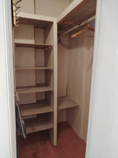 Мебель: Двуспальная кровать, Кухонный гарнитур, Обеденный стол, Письменный стол, Шкаф, Мебель можно убрать, тумбочка, зеркало, полки
