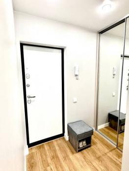 Холодильник, диван, Титан, свч печь, утюг, домофон, теплые полы . Всё новое!, Гардеробная, Железная дверь, Ламинат, Межкомнатные двери, Натяжной потолок, Пластиковые окна, Софиты, Стены выровнены, Тёплый пол