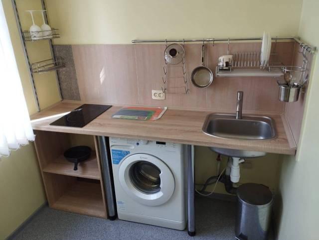 Необходимо обратить внимание на открытую планировку кухни - очень удобно в уборке, но не для всех привычно.