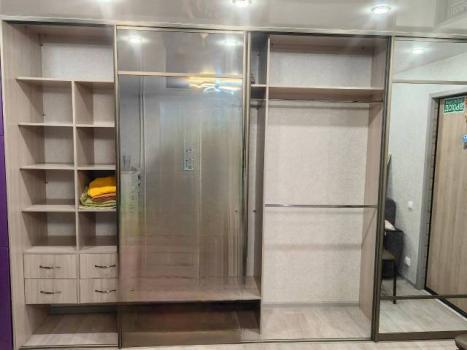 Гостиная: 27 кв.м. Шкаф-купе 4,5м, Диван угловой (раскладывающийся), Компьютерный стол, комод.