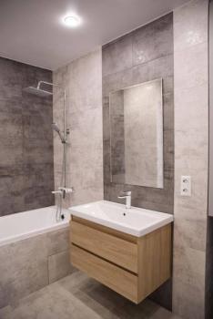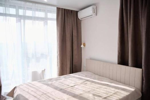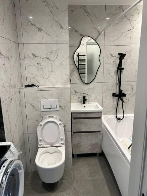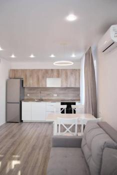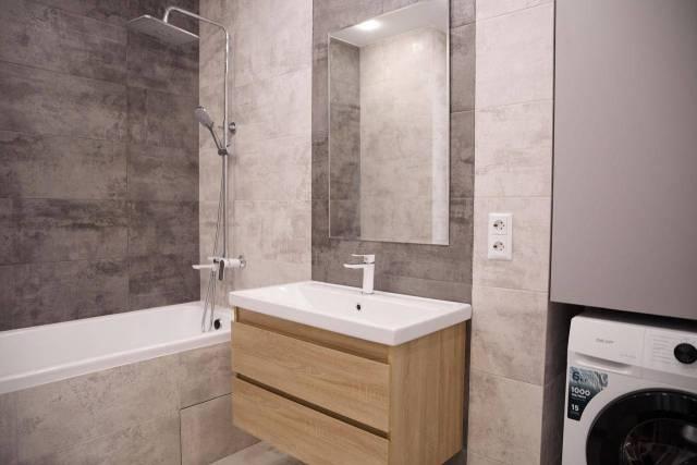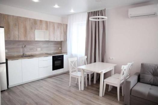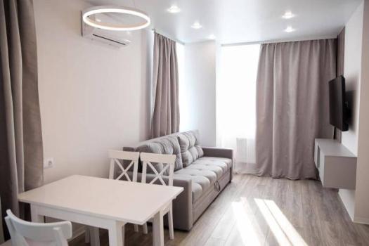 Полноценная 2-х комнатная квартира с необходимой мебелью и техникой. Уютная просторная гостиная совмещена с кухней, ванная комната с теплым полом, отдельная спальня с выделенной гардеробной зоной.
