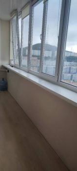 Особенности: Шикарный вид на город, Балкон с панорамным видом, Балкон застеклён, Железная дверь, Ламинат, Натяжной потолок, Пластиковые окна, Софиты, Стены выровнены, Тёплый пол, Лоджия, Паркет