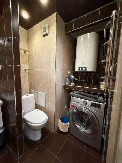 Мебель: Двуспальная кровать, Диван, Компьютерный стол, Обеденный стол, Письменный стол, Гардероб, Тумба под обувь, 2 встроенных шкафа в ванной и туалете, Торшер, Тумба под телевизор
