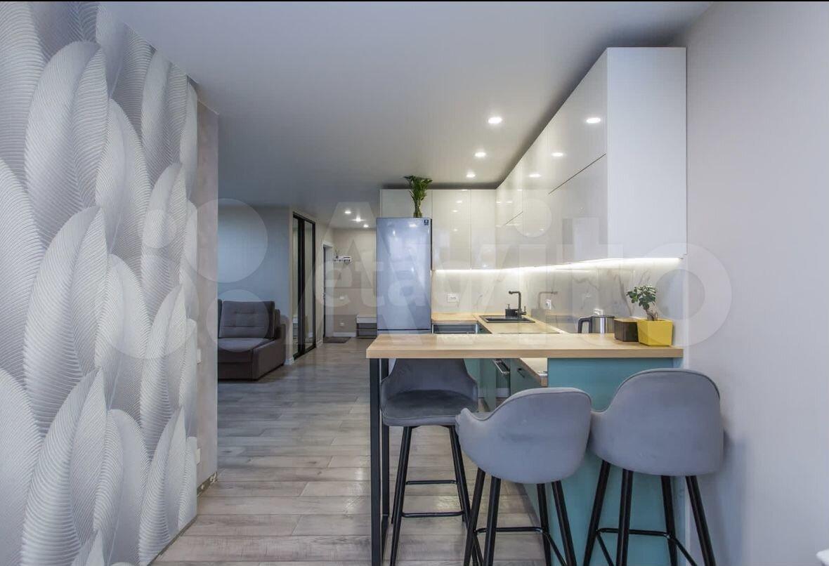 Квартира с современным ремонтом, где прослеживается морская тематика.
