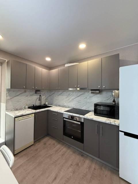 Особенности: Железная дверь, Ламинат, Линолеум, Межкомнатные двери, Натяжной потолок, Пластиковые окна, Софиты, Стены выровнены, Тёплый пол