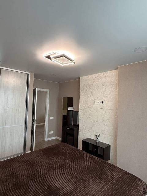 Особенности: Гардеробная, Ламинат, Межкомнатные двери, Натяжной потолок, Пластиковые окна, Софиты, Стены выровнены, Тёплый пол