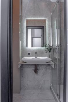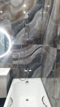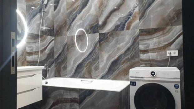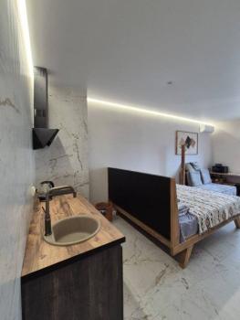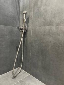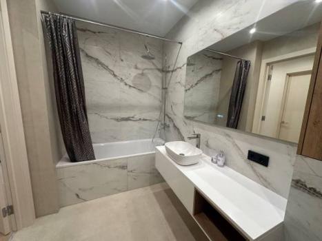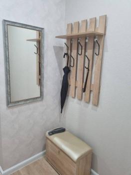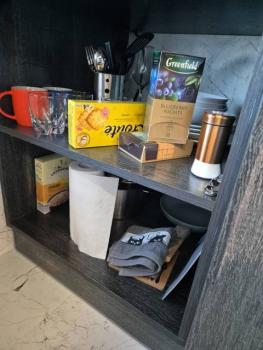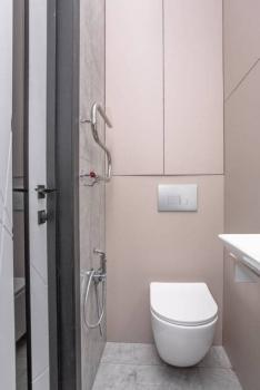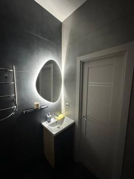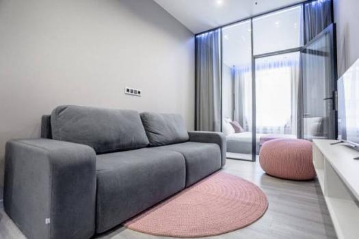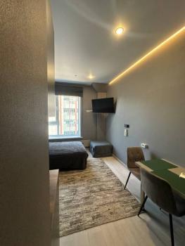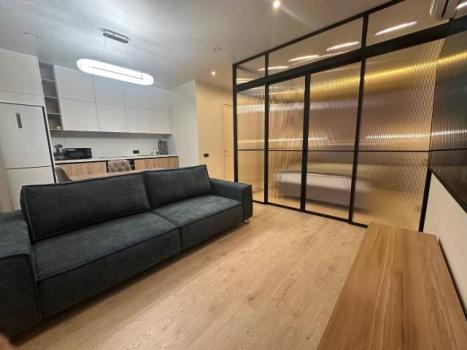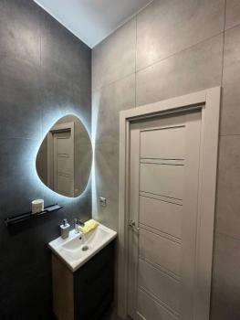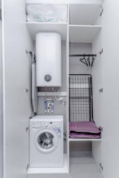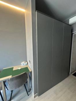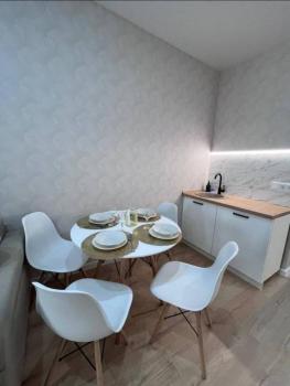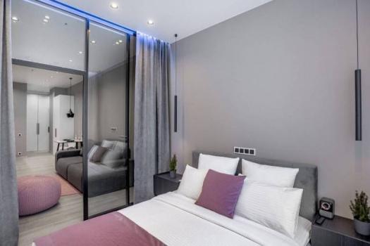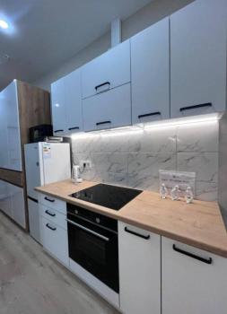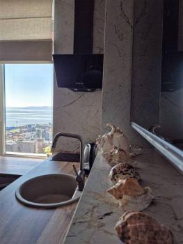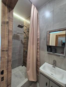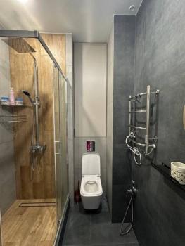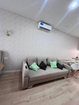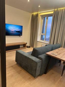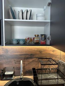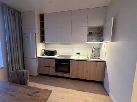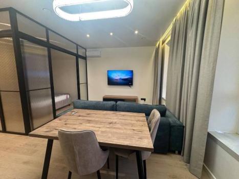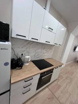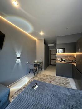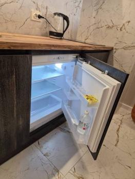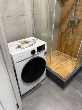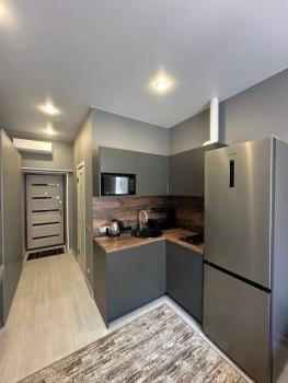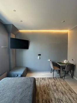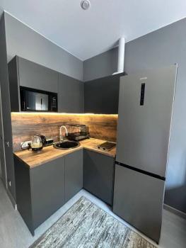 В студии сделан современный дизайнерский ремонт, высокие потолки, есть все необходимое для комфортного проживания. Большой телевизор, кровать с ортопедическим матрасом. Просторный комфортабельный кухонный уголок с индукционной плитой, мощной вытяжкой, подсветкой трех видов, вместительный бесшумный холодильник Gorenge, теплые полы, микроволновая печь LG, электрочайник и вся необходимая посуда для приготовления и потребления пищи. Обеденный/рабочий стол с двумя стульями,с коростной интернет оптиволокно (wi-fi), smart TV. Огромный вместительный шкаф с множеством отделений и полочек, чтобы вы могли разместить все свои вещи. (Также имеется дополнительное место для хранения вещей (чемоданов) под кроватью). Современный большой санузел с просторным душем, гигиенический душ, инсталляцией, электрическим полотенцесушителем, раковиной и зеркалом с подсветкой.