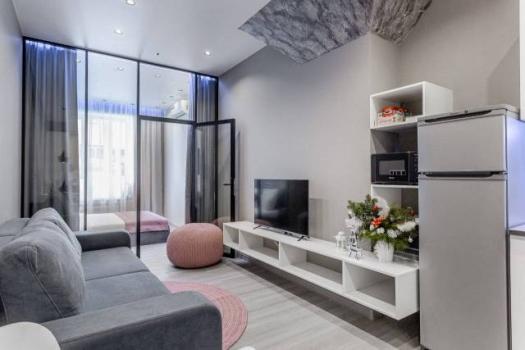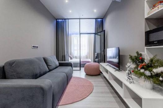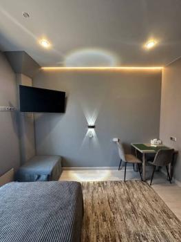 Квартира-студия 20 м.кв расположена в центре города, в абсолютно новом многоэтажном доме, с просторным лобби и охраной.