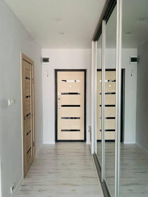 Гардеробная, Железная дверь, Ламинат, Пластиковые окна, Межкомнатные двери, Натяжной потолок, Софиты, Стены выровнены, Тёплый пол