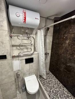 Особенности: Железная дверь, Ламинат, Натяжной потолок, Пластиковые окна, Софиты, Стены выровнены, Тёплый пол, кафель