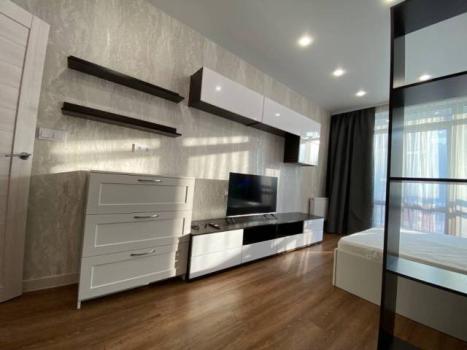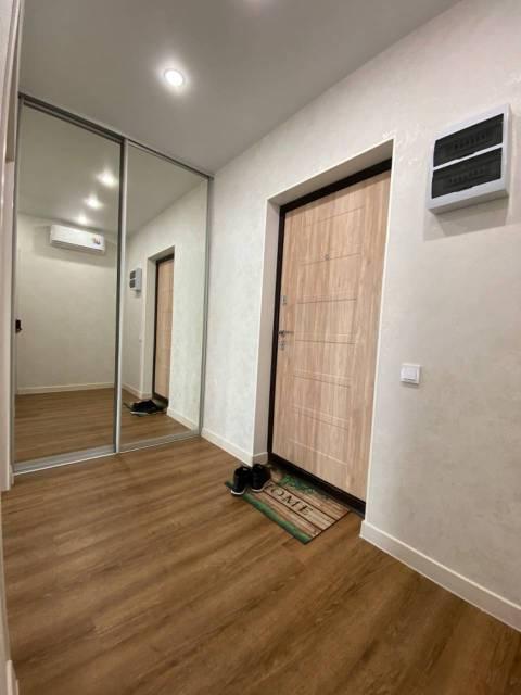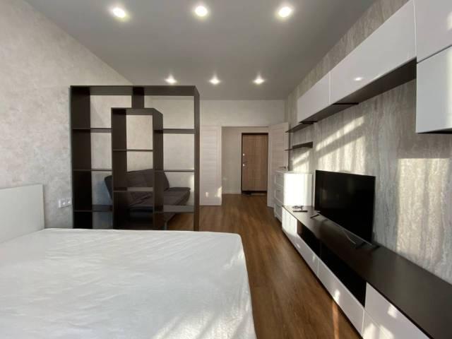 Особенности: Гардеробная, Ламинат, Межкомнатные двери, Натяжной потолок, Пластиковые окна, Софиты, Стены выровнены, Тёплый пол