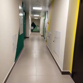 Железная дверь, Натяжной потолок, Пластиковые окна, Стены выровнены, Софиты, Гардеробная, Ламинат.