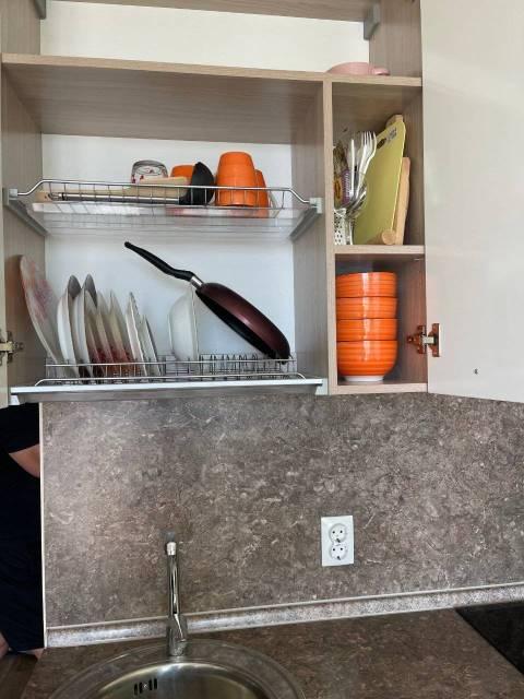 В квартире есть всё для комфортного проживания (постельное бельё, полотенца, посуда, часы, вазы, кастрюли, сковородки, сушилка, ведро, таз, удлинитель, тапочки, ковёр, коврики, шторы, тюль, картины, цветок, хоз.инвентарь, бытовая химия).