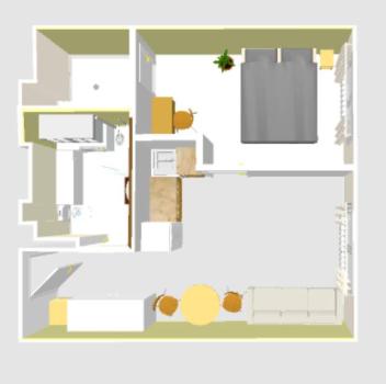 Мебель: Двуспальная кровать, Диван, Кухонный гарнитур, Обеденный стол, Шкаф