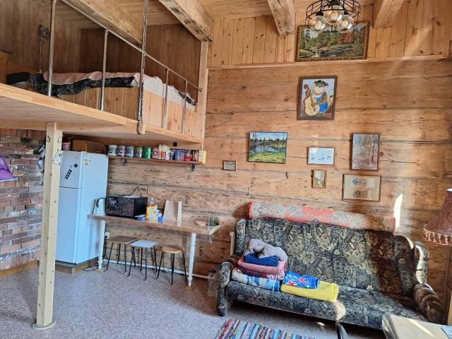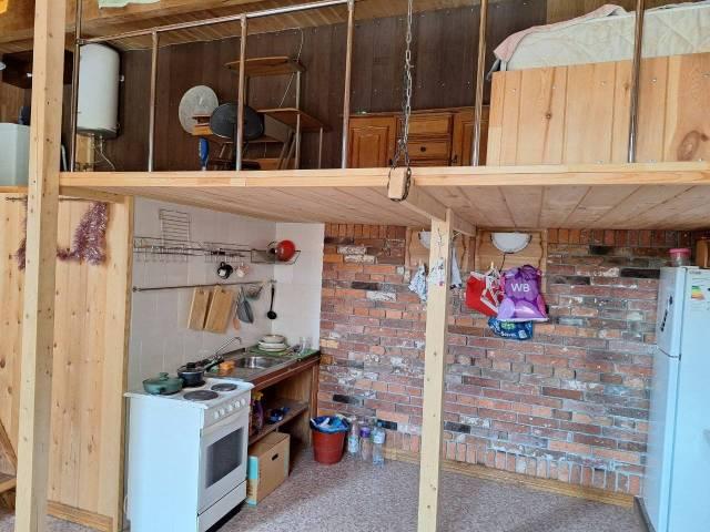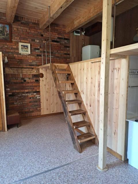 Особенности: Квартира в два этажа, на первом этаже душ, кухонная зона, обеденный стол, топчан, шкаф купе, на втором этаже спальня, туалет. Балкон застеклён, Железная дверь, Линолеум, Пластиковые окна