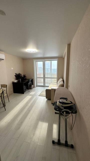 Особенности: Возможна краткосрочная аренда.Квартира в районе проспекта Красоты с отличным видом на город и море. Высота потолков 3,5 м, очень светлая. По всей площади квартиры установлен теплый пол, на полу ПВХ плитка. В ванной уложен керамогранит, установлен термостатический тропический душ. Квартира новая, год назад закончен ремонт.