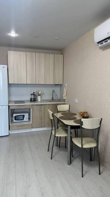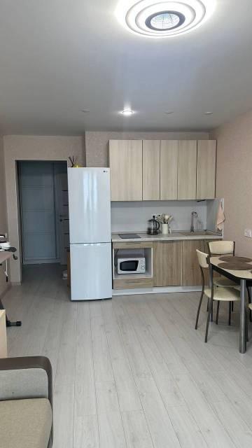 Особенности: Сдаю уютную квартиру – студию сроком на 6-ть месяцев, с евроремонтом и красивым видом в сторону бухты Золотой Рог! Общая площадь 28,7 кв.м, без учета балкона (площадь балкона: 3,5 кв.м.). Квартира очень светлая и теплая, расположена на 9-ом этаже.