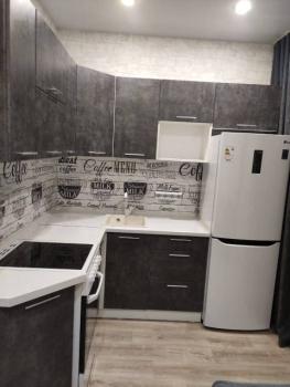 Мебель: Угловой диван (раскладывается), Кухонный гарнитур, Обеденный стол, Стулья, Комод.