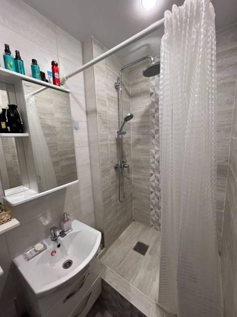 Мебель: Кухонный гарнитур, Обеденный стол, Стулья, Полка для обуви, Стенка, Шкаф-купе. В санузле душевой уголок, умывальник, шкаф с зеркалом. Новые двери (входная и межкомнатная)., Двуспальная кровать 160 см с матрасом
