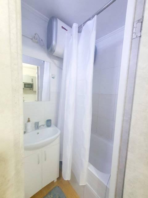 Санузел совмещенный, имеется кухонная зона и необходимая кухонная и столовая посуда. Квартира полностью меблирована для комфортной жизни.