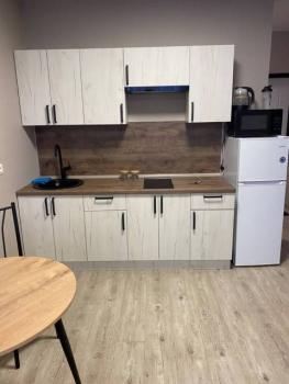 Техника: В квартире имеется все, что необходимо для комфортного проживания: Кондиционер (с функцией обогрева), Микроволновая печь, Вытяжка, Варочная панель, Духовой шкаф, Посудомоечная машина, Измельчитель пищевых отходов, Холодильник, Титан (бойлер на 100 литров), Чайник, Телевизоры (два - 50 дюймов в спальной комнате и 55 дюйма с кухне-гостиной), Стиральная машина, Сушильная машина