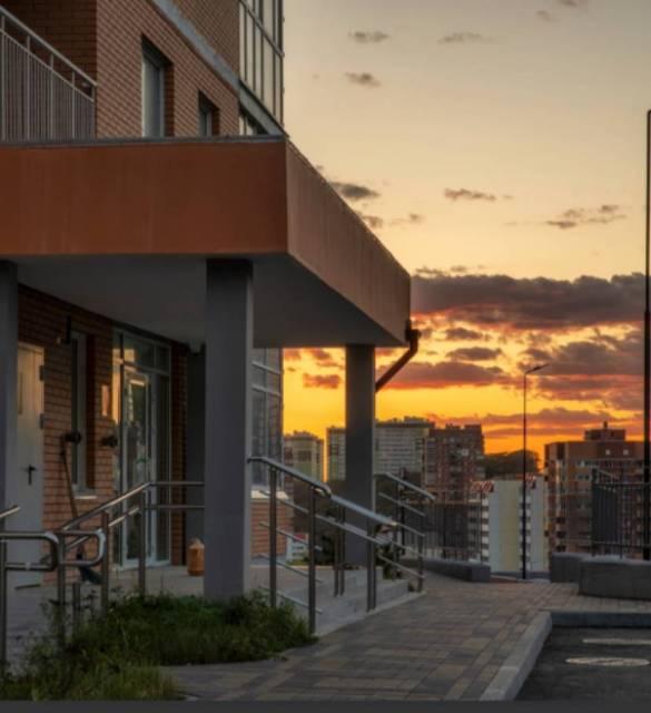 Удобное расположение и красивая преддомовая территория. много детских и спортивных площадок.