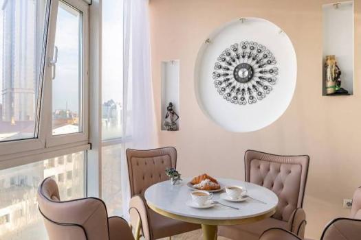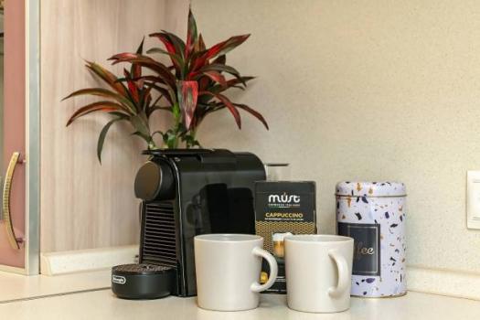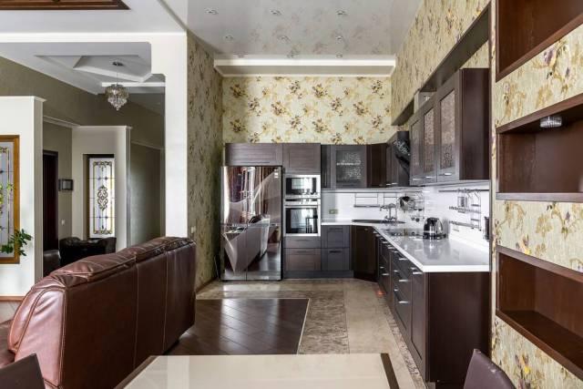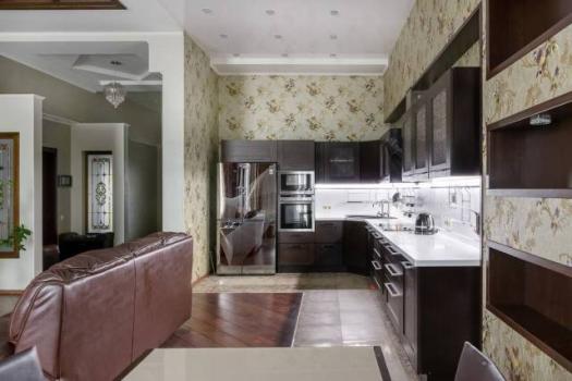 1 . Кухня, полностью оборудованная под нужды современного человека, а именно, стеклокерамическая плита, духовой шкаф, вытяжка, микроволновая печь, холодильник, кофемашина.