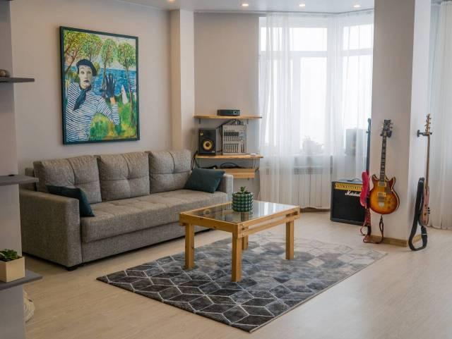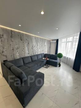 Особенности: Дизайнерский ремонт! Тёплый пол, Стены выровнены, Пластиковые окна, Софиты, Межкомнатные двери, Натяжной потолок, Железная дверь, Гардеробная