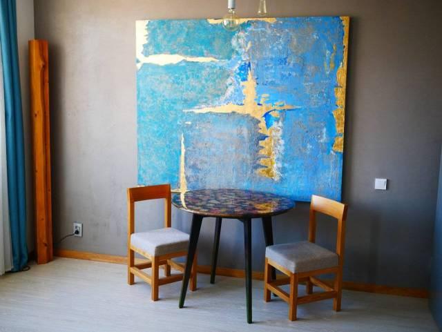 Мебель: Большая гардеробная, Двуспальная кровать, Диван, Журнальный столик, Кухонный гарнитур, Обеденный стол, Стенка, Комод, Антикварное зеркало, Напольные лампы,