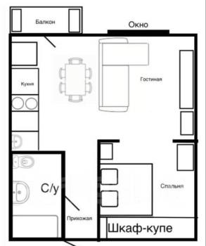 Мебель: Двуспальная кровать, Диван, Кровать, Кухонный гарнитур, Обеденный стол, Письменный стол, Шкаф, Шкаф-купе