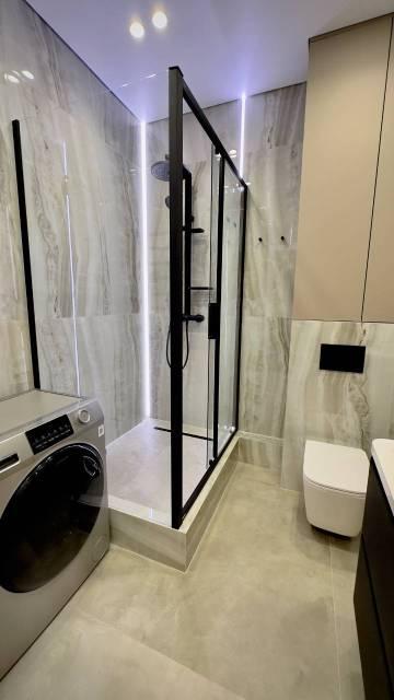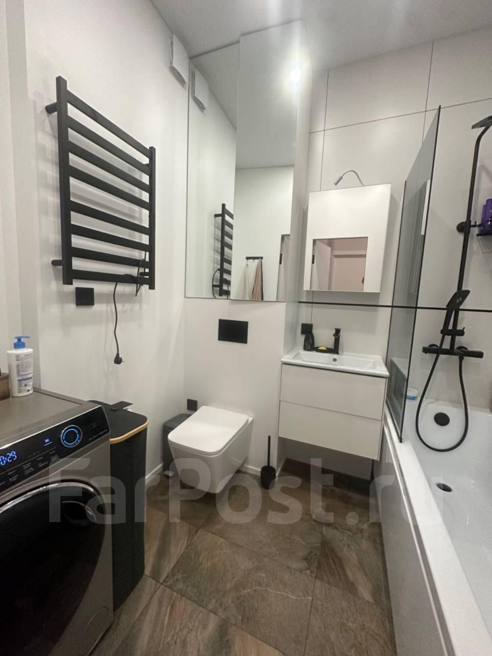 · Санузел: Стиральная машина, электрический бойлер (есть гвс), подвесная тумба с раковиной, подсветка зеркала.