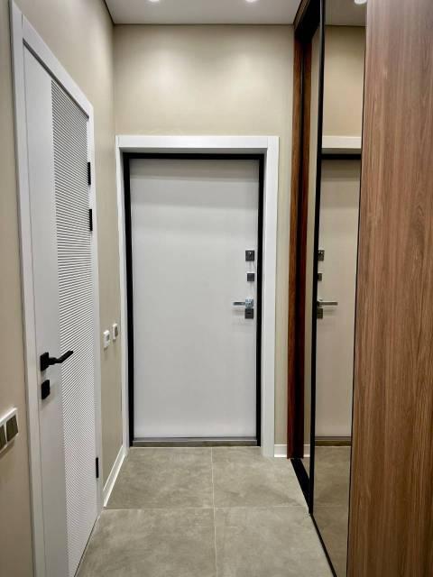 Особенности: Гардеробная, Железная дверь, Ламинат, Межкомнатные двери, Натяжной потолок, Пластиковые окна, Софиты, Стены выровнены, Тёплый пол