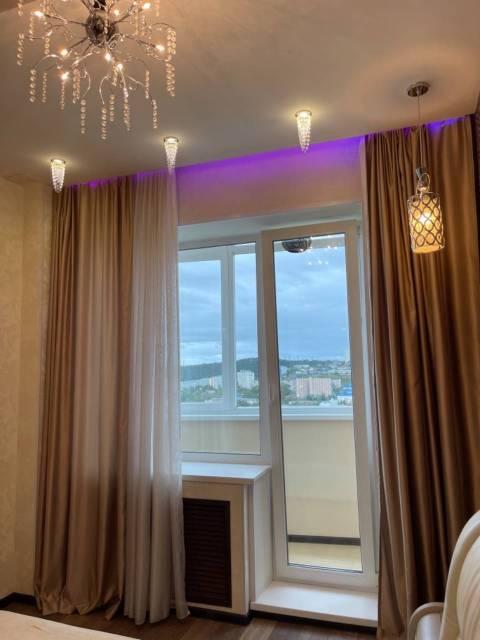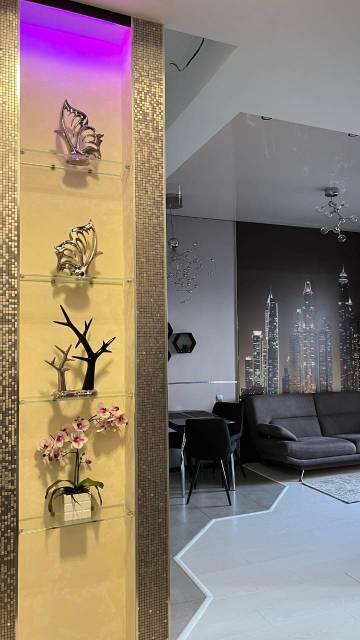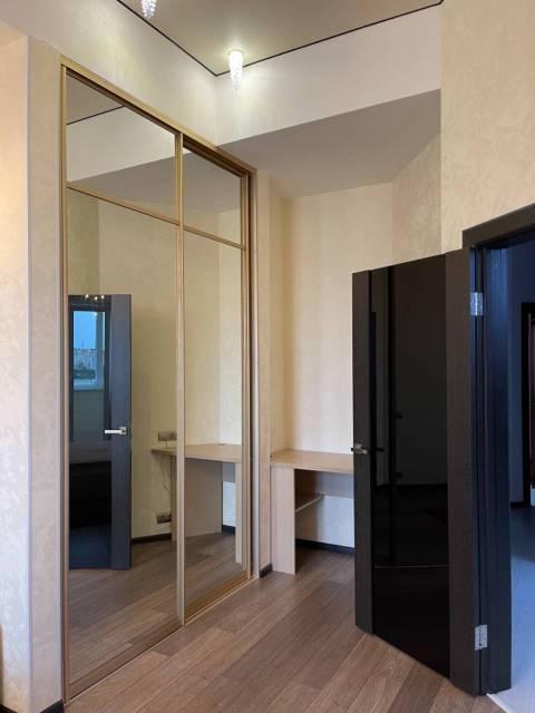 Отдельная гардеробная, Железная дверь, ламинат, Натяжной потолок, Тёплые полы, Пластиковые окна, Софиты, подсветка, дизанерские обои, в сан. узле дизайнерский керамогранит, Лоджия,Балкон застеклён