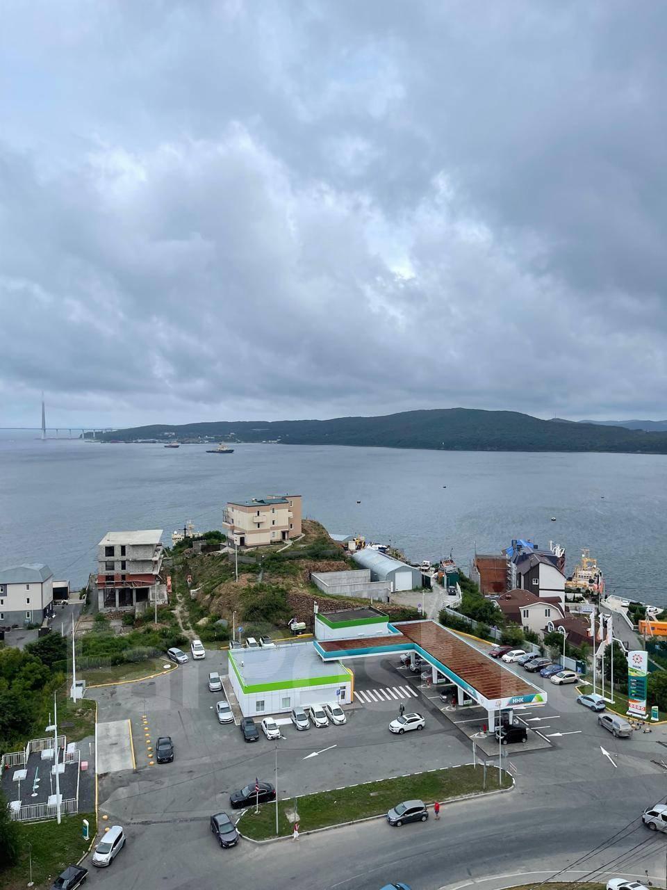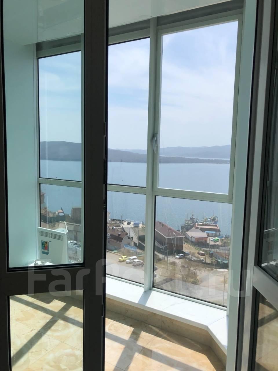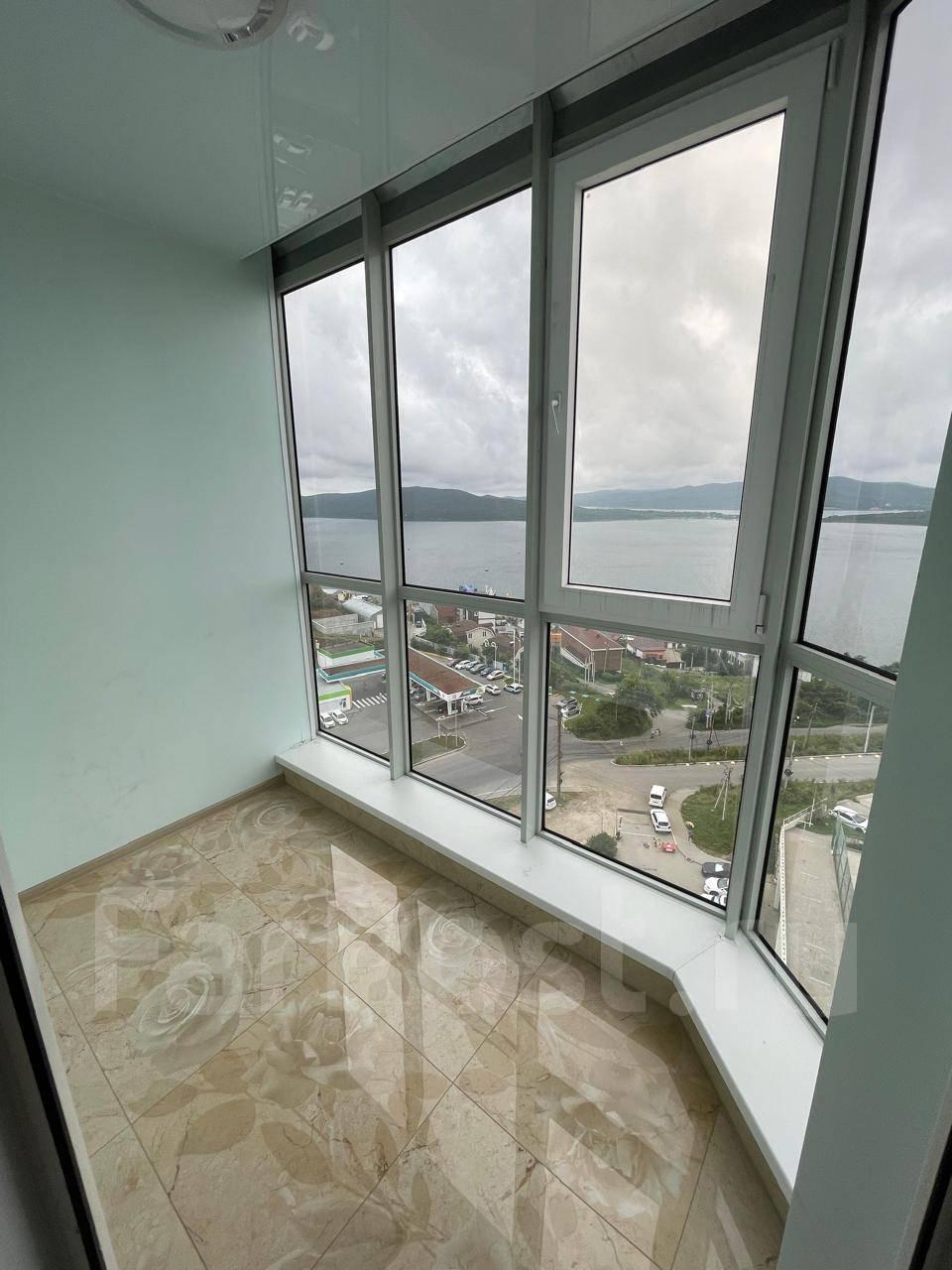 В прихожей и ванной комнате керамогранит. В комнатах на полу ламинированный паркет. Тёплый пол в ванной, в прихожей и на кухне. Натяжной потолок. Освещение (софиты, люстры, подсветки). Двухуровневое Витражное остекление от пола до потолка. Окна с потрясающим видом на море и мост! Шкафы, гардеробная. Сан узел с душевой кабиной.